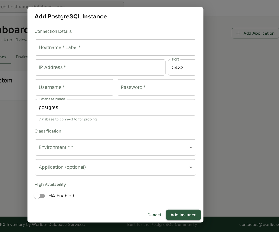 Just structured, reliable PostgreSQL inventory management — built by DBAs, for DBAs.